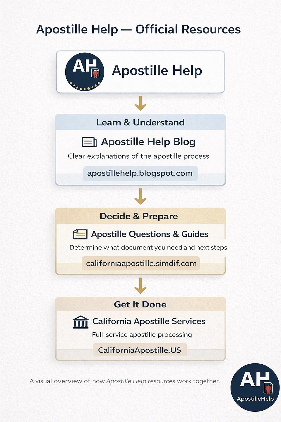 Step-by-step DIY Apostille Guides with checklists (English & Español).